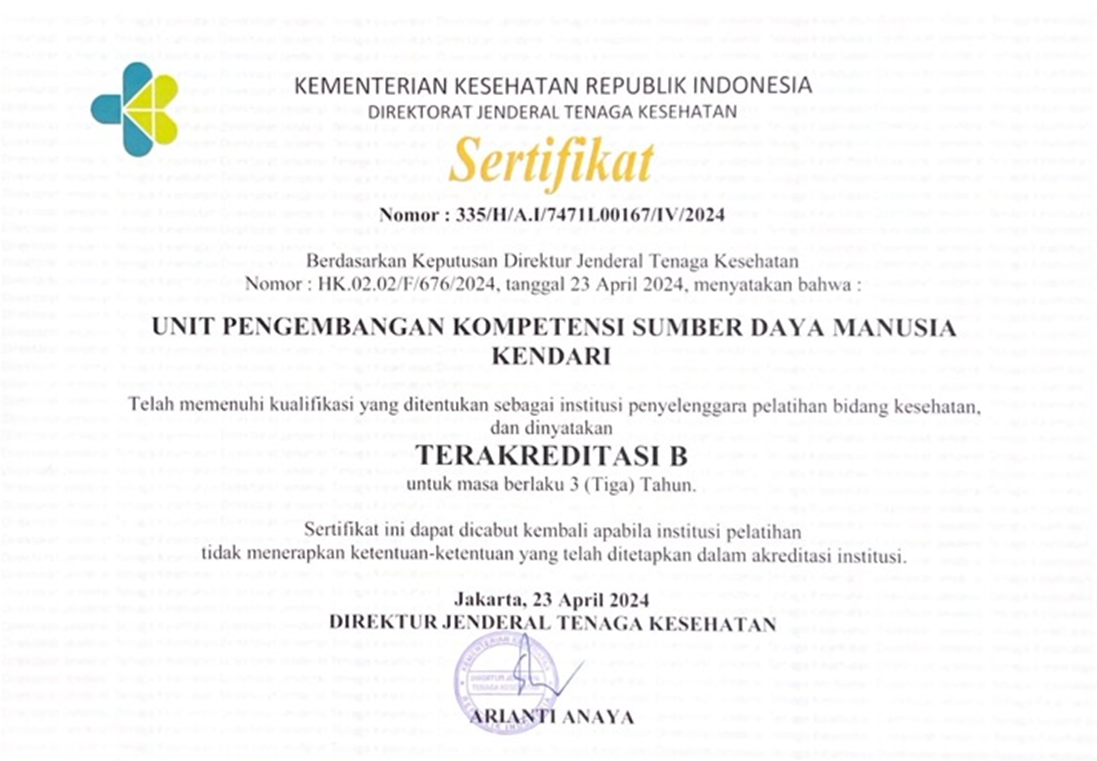 UNIT PENGEMBANGAN KOMPETENSI SUMBERDAYA MANUSIA KESEHATAN (UPKSDMK) POLTEKKES KEMENKES KENDARI. Motto: ’’EXCELLENCE IN TRAINING AND COMPETENCE’’